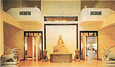 博物館後花園中也立有許多大型石獅 ,與遊客在藍天碧海前共聽海濤。值得一提的是,由於博物館與龜山島遙遙相望,坐擁天賜的好山好水,從二樓展場的落地窗向外眺望,即是龜山島的美麗倩影,而且從不同角度的窗子看出去的景物都不一樣,一窗一景,有如屏風般將大自然收納在室內,這種以窗借景的建築手法,正是中國江南的造園藝術之一。流連在這充滿文化與自然的空間裡,似乎連身心都滌淨了,的確是令人難以忘懷的全新經驗。