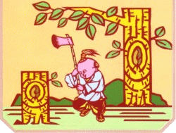 相傳樵夫吳剛,因為醉心於仙道,但始終不肯專心工作,因此天帝震怒,把他拘居留在月宮,並說:「如果你砍倒桂樹,就可獲仙術。」但吳剛每砍完一棟桂樹,一段時間後,桂樹便會自動癒合,日復一日,吳剛伐 桂的願望仍未達成,而他也只好不斷的砍下去。